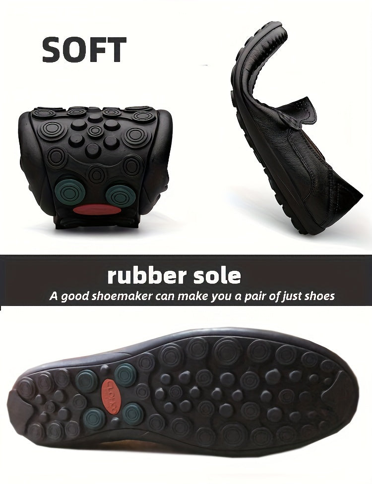 CLOHOO Men's Slip-On Business Casual Shoes - Breathable Second-Layer Leather Upper, Comfortable PU Lining & Rubber Sole, All-Season Versatile for Office, Travel & Vacation - Black, Refined Appearance | Sturdy Rubber Sole, Dre