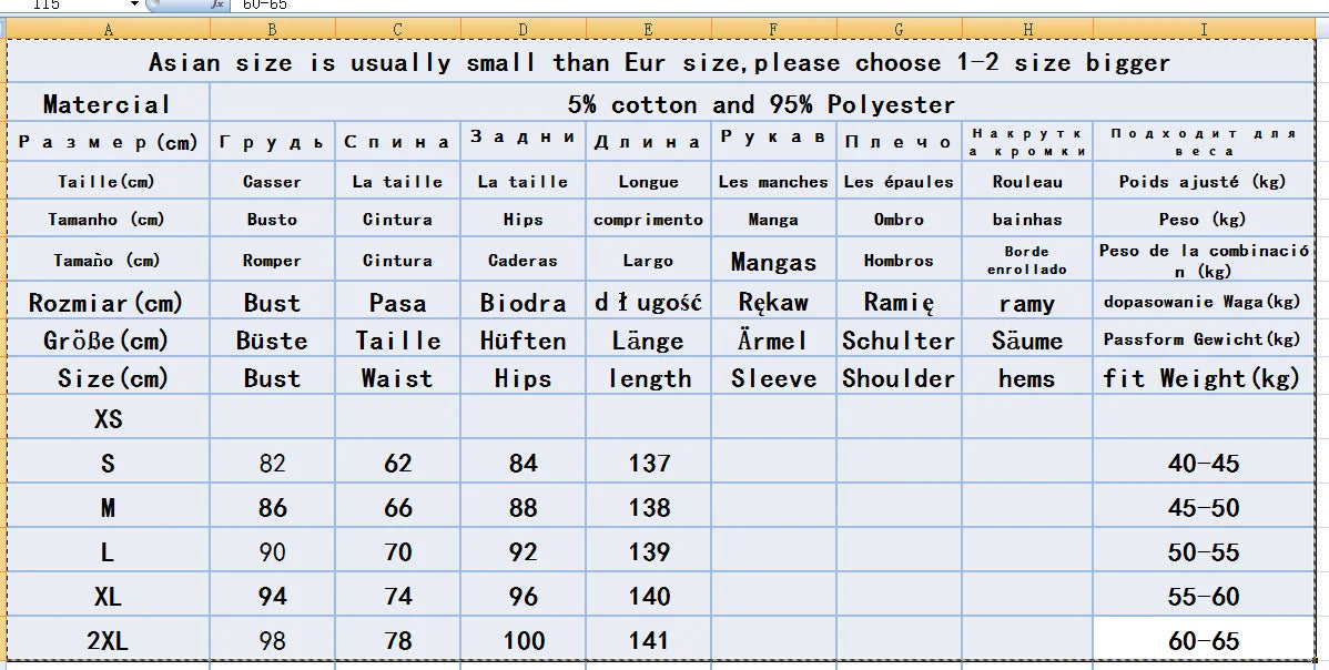 | Asian size is usually small than Eur size,please choose 1-2 size bigger | ||||||||