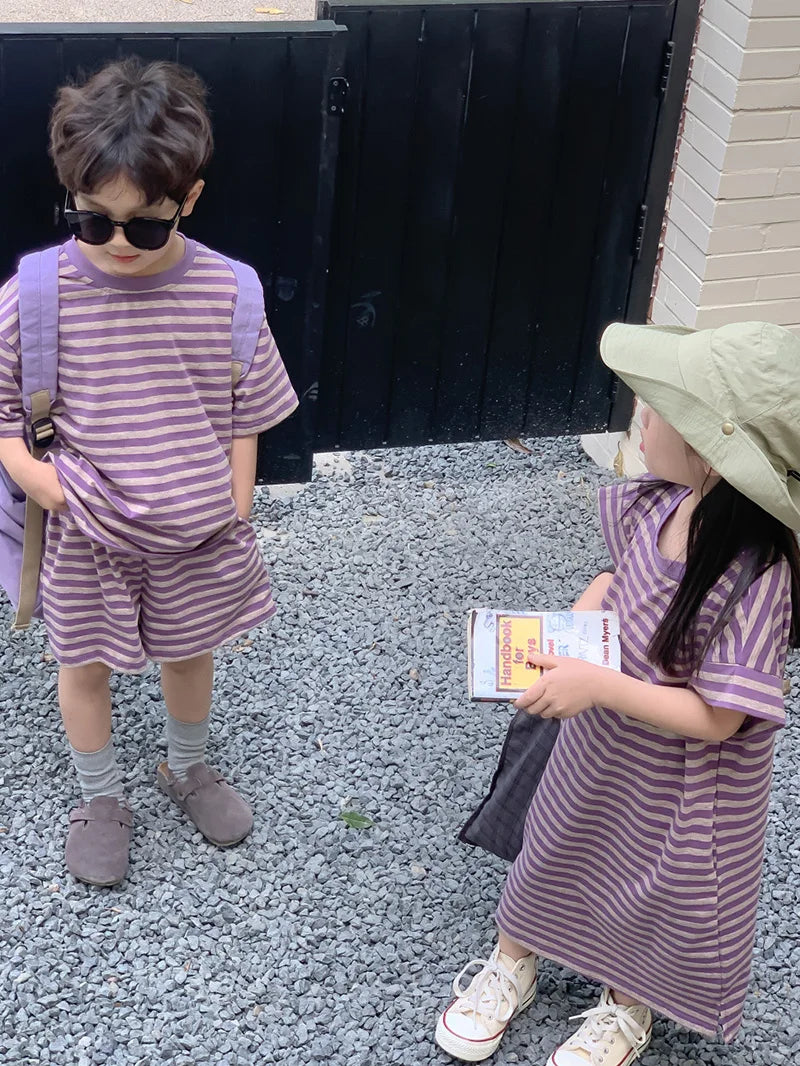 MILANCEL Summer Kids Clothing Set Striped Tee And Shorts Boys Casual Suit Girl Long Dress Brother And Sister Clothes